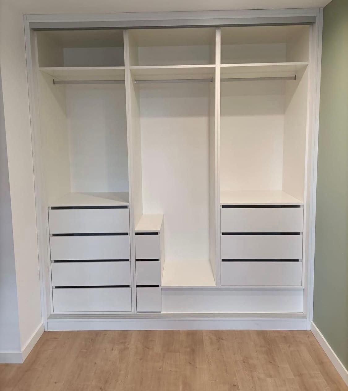 - Armarios a medida: armarios empotrados, vestidores y soluciones de almacenaje adaptadas al espacio y al uso real.